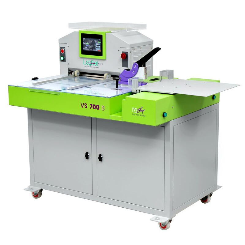 Машина VS 700 – единственная в своем роде универсальная переплетная машина, которая позволяет выполнять все основные типы переплетных операций: обрезка по контуру (окна), биговка, вырубка отверстий и степлирование. Машина работает в полуавтоматическом режиме: отпечатанные листы подаются в машину вручную, все остальные операции осуществляется автоматически. В память машины можно записать 999 программ с различными рабочими параметрами всех операций. Управление всей машиной осуществляется с помощью сенсорной панели управления. Одной из важных особенностей этой машины является то, что она выполняет вырубку отверстий V-образной формы и step-binding (ступенчатое скрепление) для изготовления продукции с технологией полного открывания (layflat). Машина имеет возможность выполнять несколько операций на одном листе за один проход, например, фальцевание обложки, изготовление обложек для карт панелей и подставок для столов, которые можно использовать в качестве календарей, карточек меню и т.д.